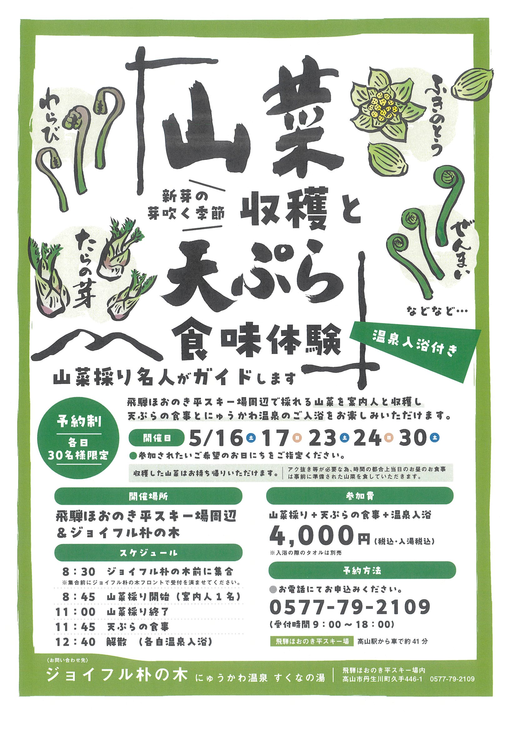 当館では春の芽吹くこの時期に日数限定で山菜採りツアーを行います。